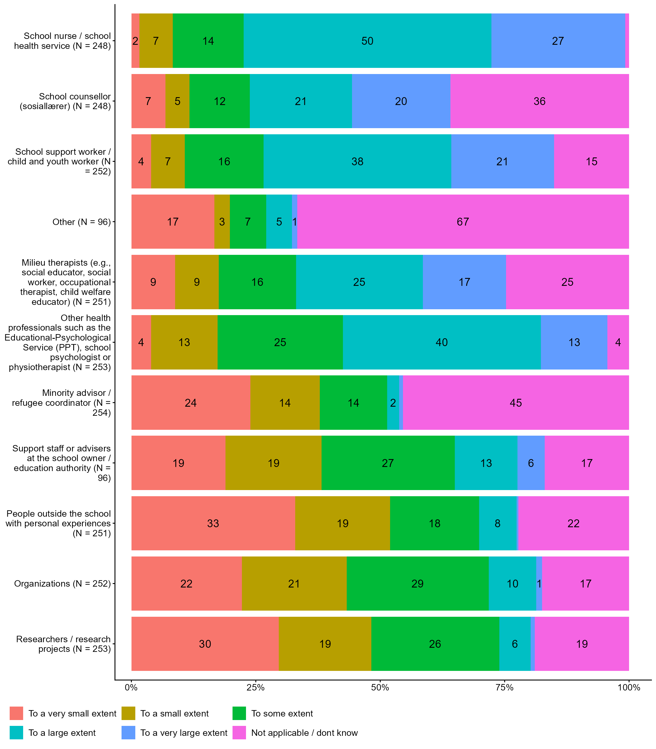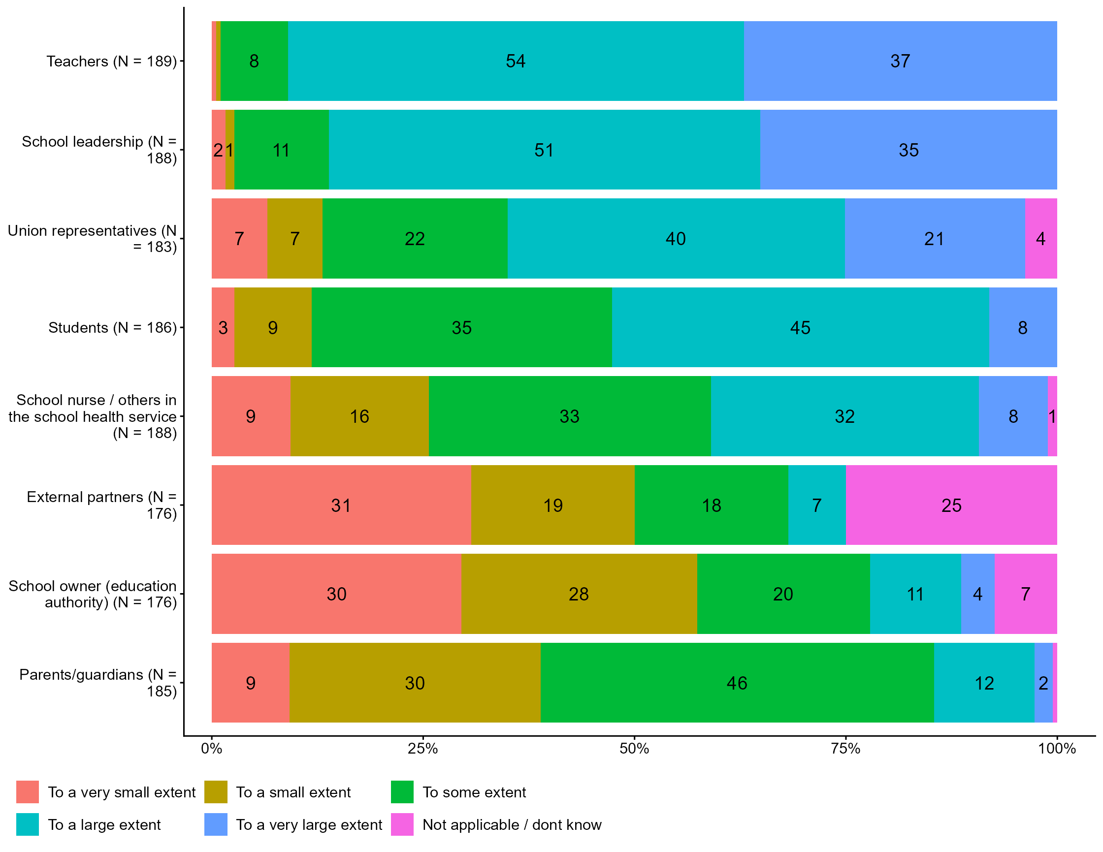 2.5 To what extent do teachers collaborate with other occupational groups in and outside the school in work with public health and life skills?