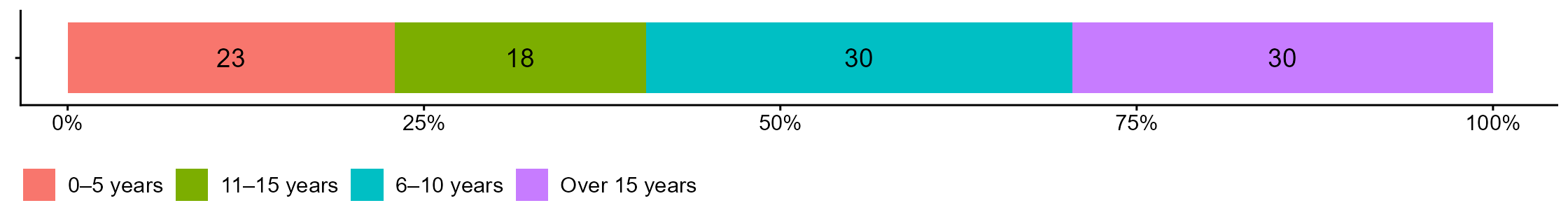 Figur 2.17.Approximately how many years have you worked in school leadership?. N = 244, Figurdata (XLSX), PNG. (SLQ28_DERIVED)