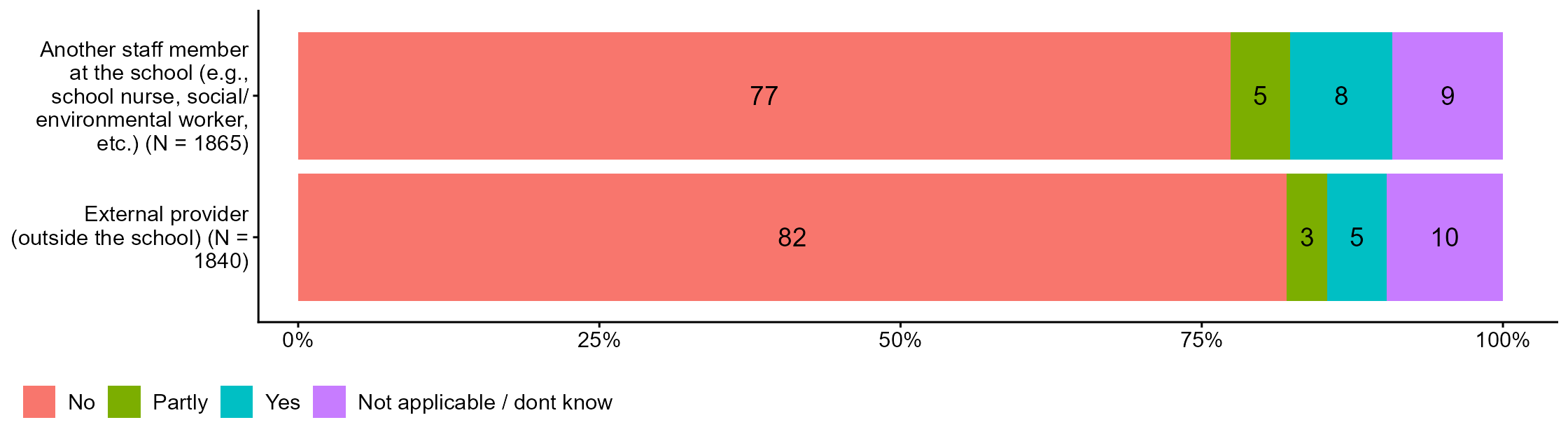 Figur 8.5.Did you involve other people when you included public health and life skills (FoL) in the lesson?. N = [1840–1865], Figurdata (XLSX), PNG. (Q_LG16_1,Q_LG16_2)