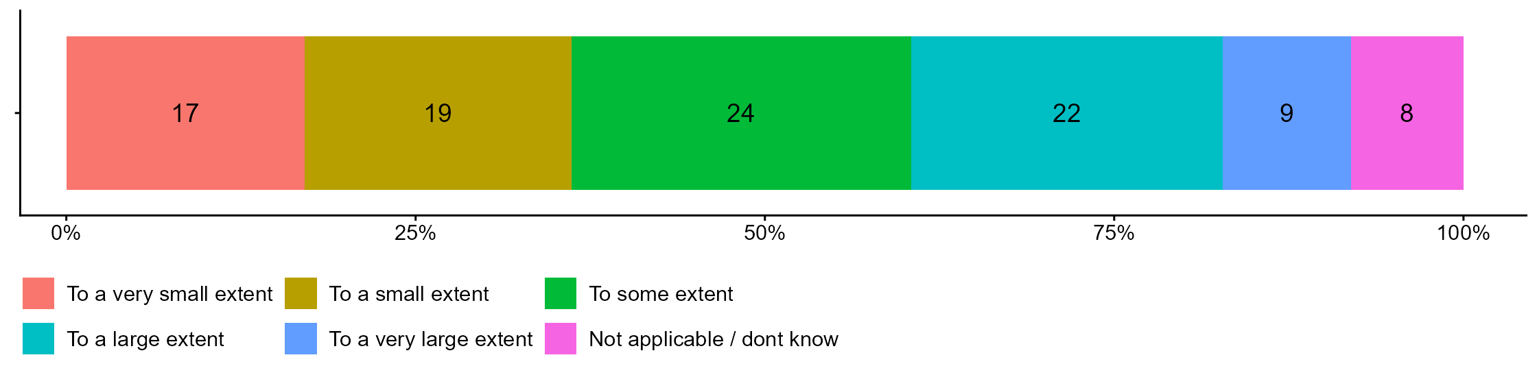 Figur 8.6.To what extent was public health and life skills included spontaneously in the lesson due to situations that arose just before or during the teaching?. N = 1887, Figurdata (XLSX), PNG. (Q_LG17)