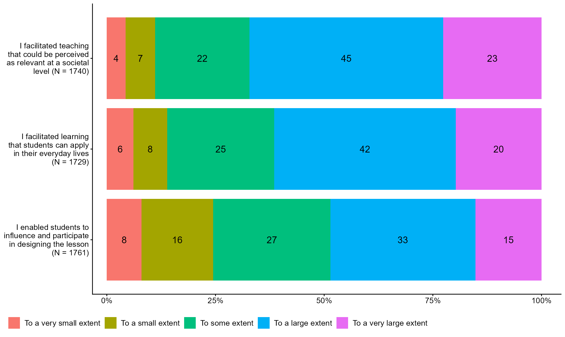 Figur 8.4.How did you facilitate public health and life skills in this lesson?. N = [1729–1761], Figurdata (XLSX), PNG. (Q_LG15_1,Q_LG15_2,Q_LG15_3)