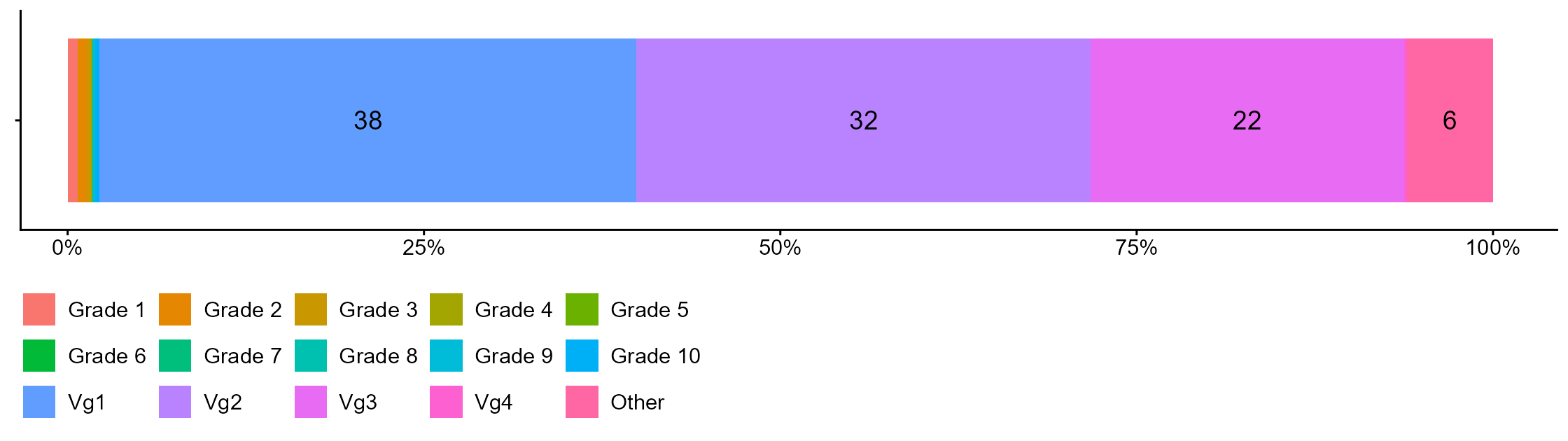 Figur 8.1.Which grade level was the lesson for?. N = 2045, Figurdata (XLSX), PNG. (Q_LG7)