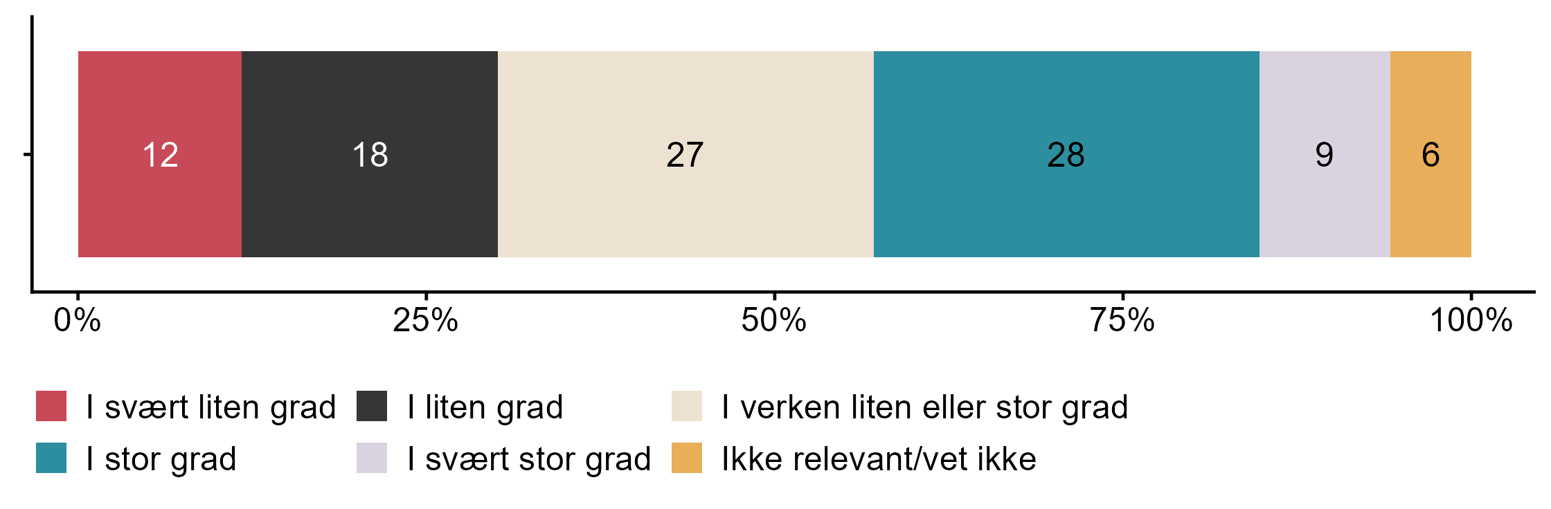 Figur 4.10.Ble undervisningen gjennomført slik du hadde planlagt?. N = 2016, Figur (PNG), Figurdata (XLSX). (Q_LG21)