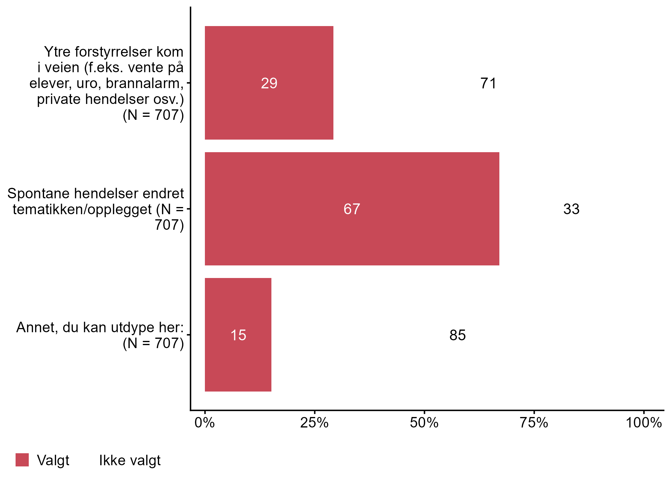 Figur 4.11.Hvorfor ble det ikke som planlagt?. N = 707, Figur (PNG), Figurdata (XLSX). (Q_LG22_1,Q_LG22_2,Q_LG22_7)