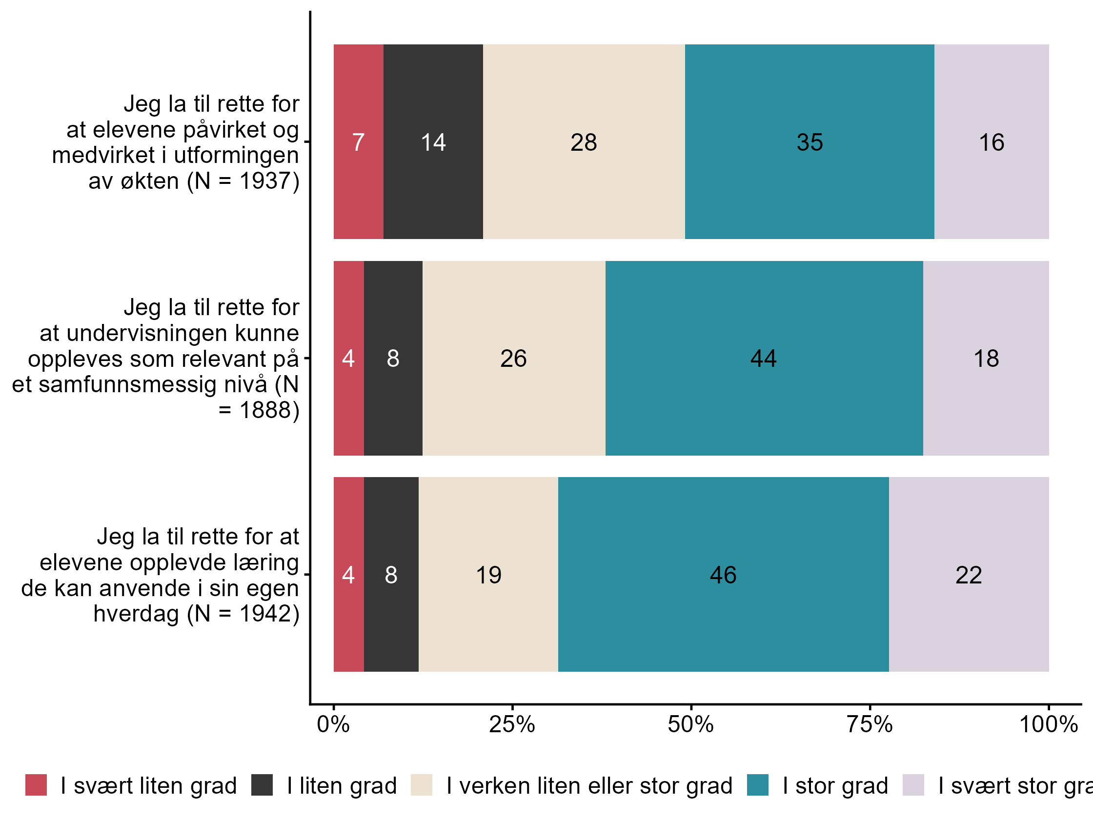 Figur 4.4.Hvordan la du til rette for folkehelse og livsmestring i denne økten?. N = [1888–1942], Figur (PNG), Figurdata (XLSX). (Q_LG15_1,Q_LG15_2,Q_LG15_3)