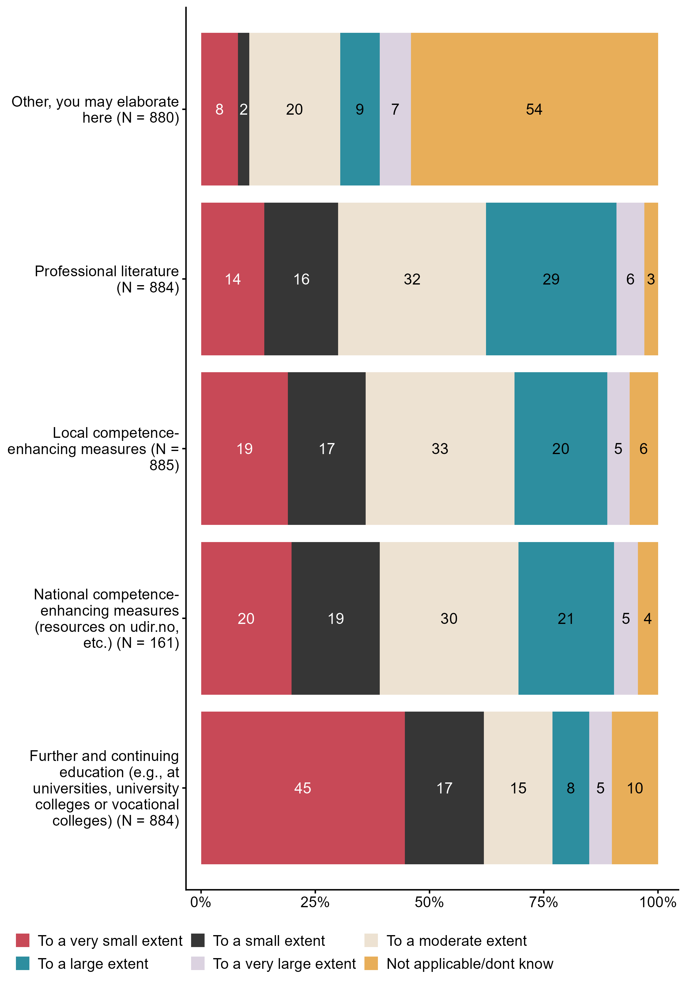 Figur 3.10.Which sources do you usually use to teach public health and life skills (FoL) in THE SUBJECT?. N = 893, Figur (PNG), Figurdata (XLSX). (Q_LS24_1,Q_LS24_28,Q_LS24_29,Q_LS24_30,Q_LS24_31,Q_LS24_32,Q_LS24_33)