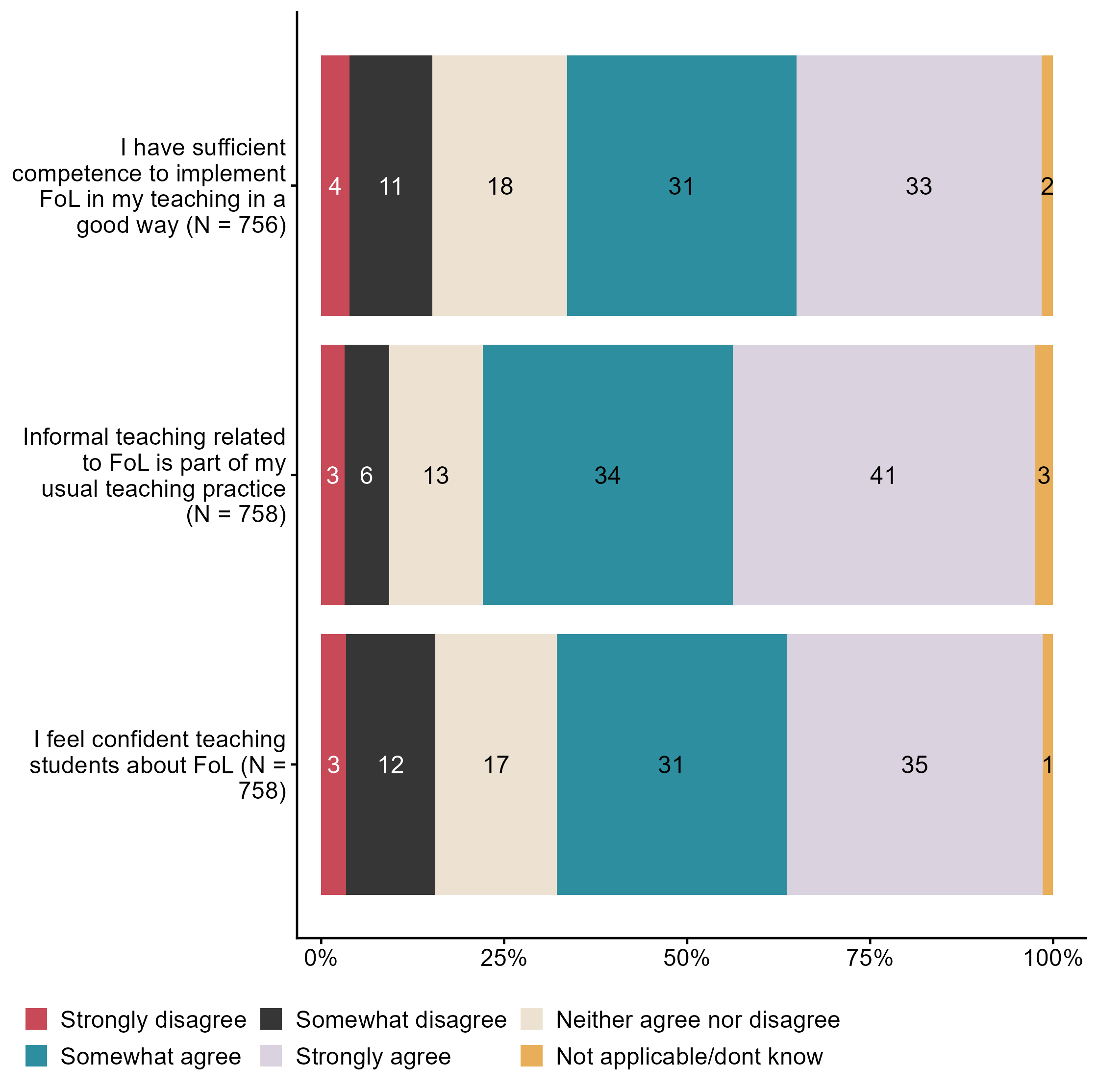 Figur 7.12.To what extent do you agree with the following statements about your competence in public health and life skills (FoL)?. N = [756–758], Figur (PNG), Figurdata (XLSX). (Q_LS27_1,Q_LS27_2,Q_LS27_3)