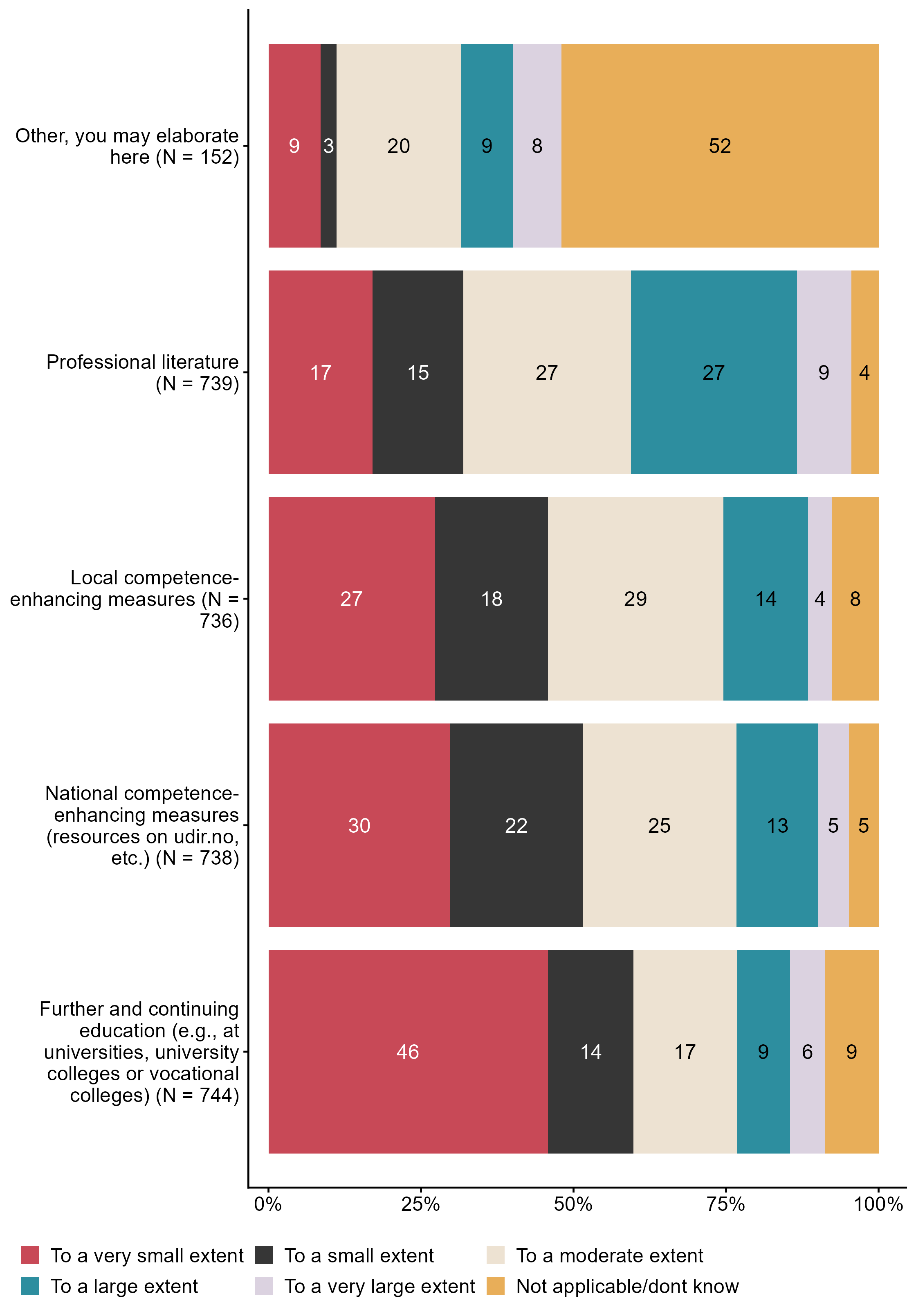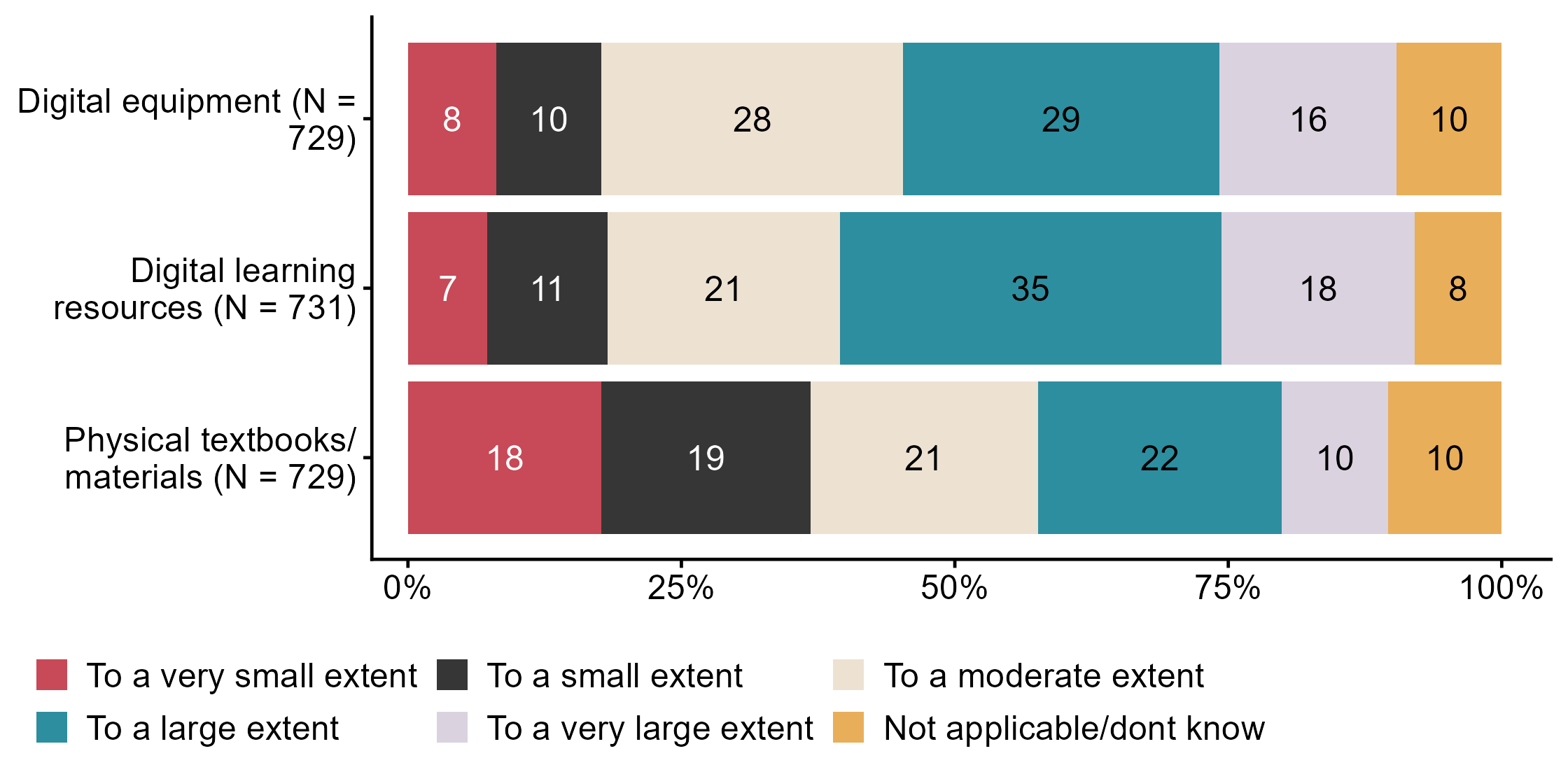 Figur 7.19.To what extent do you have sufficient access to the following for work with public health and life skills. N = [729–731], Figur (PNG), Figurdata (XLSX). (Q_LS36_1,Q_LS36_2,Q_LS36_3)