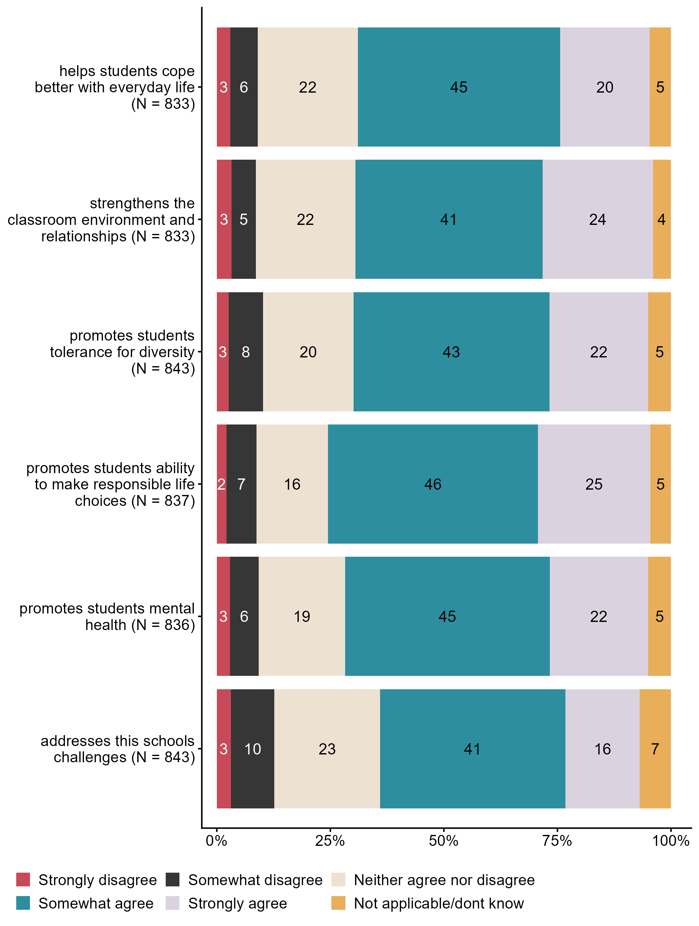 7.18 Please indicate your agreement with the following statements about your school’s work with public health and life skills (FoL)