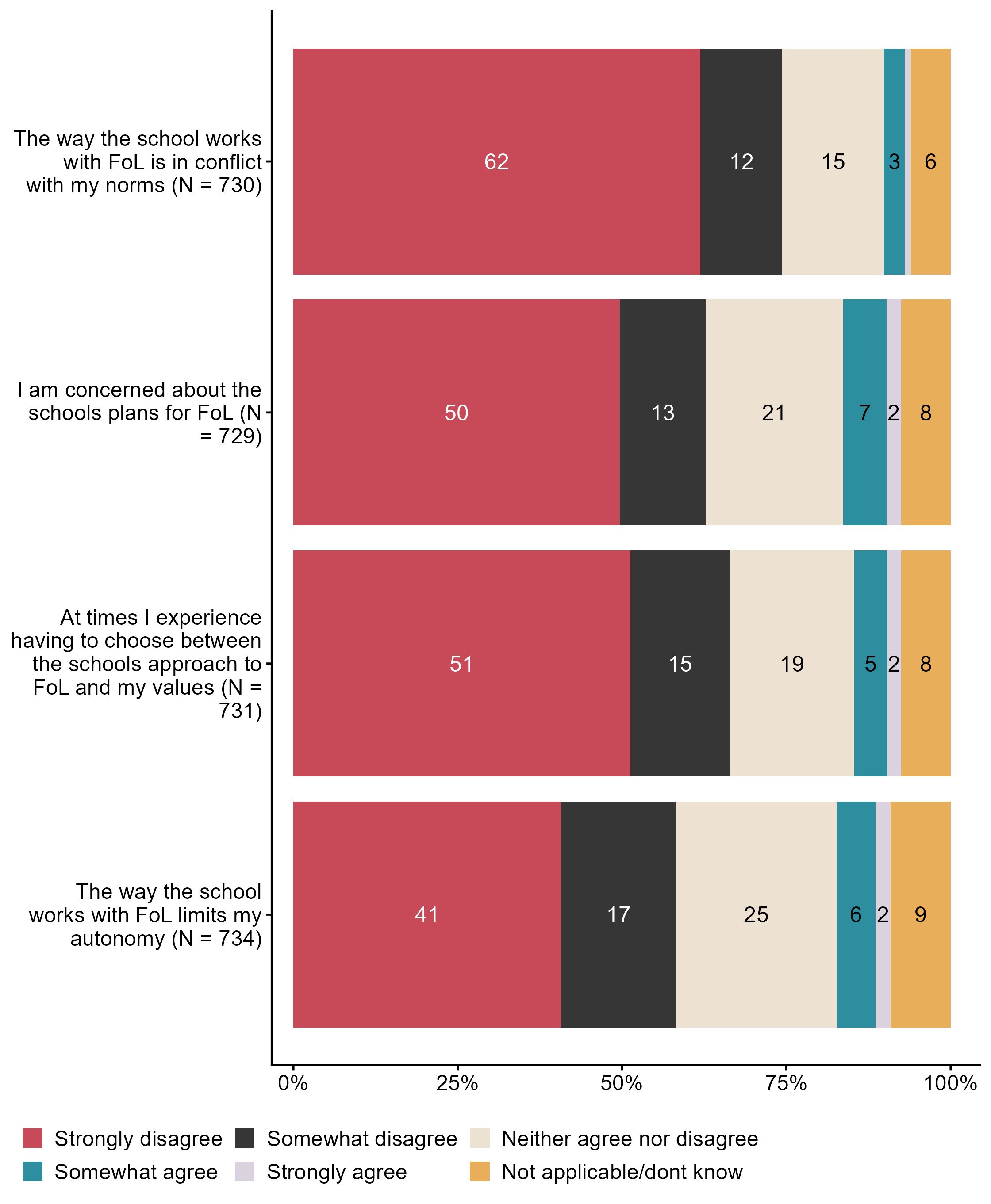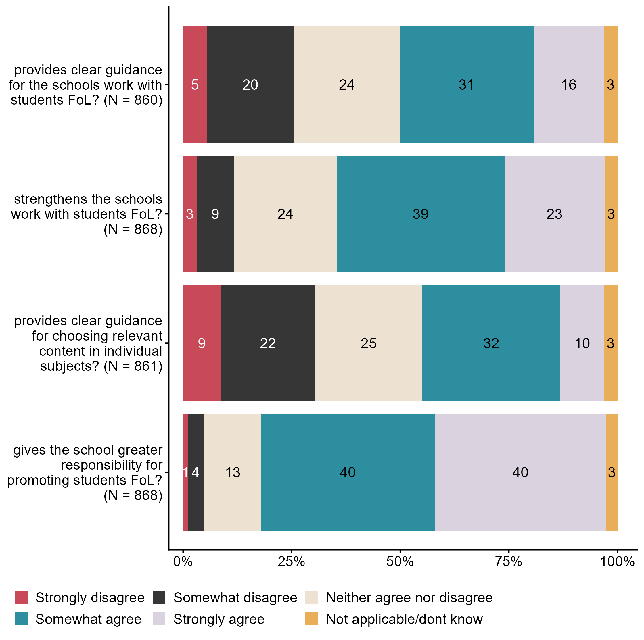 Figur 7.5.To what extent do you agree that the introduction of public health and life skills (FoL) in LK20. N = [860–868], Figur (PNG), Figurdata (XLSX). (Q_LS17_1,Q_LS17_2,Q_LS17_3,Q_LS17_4)
