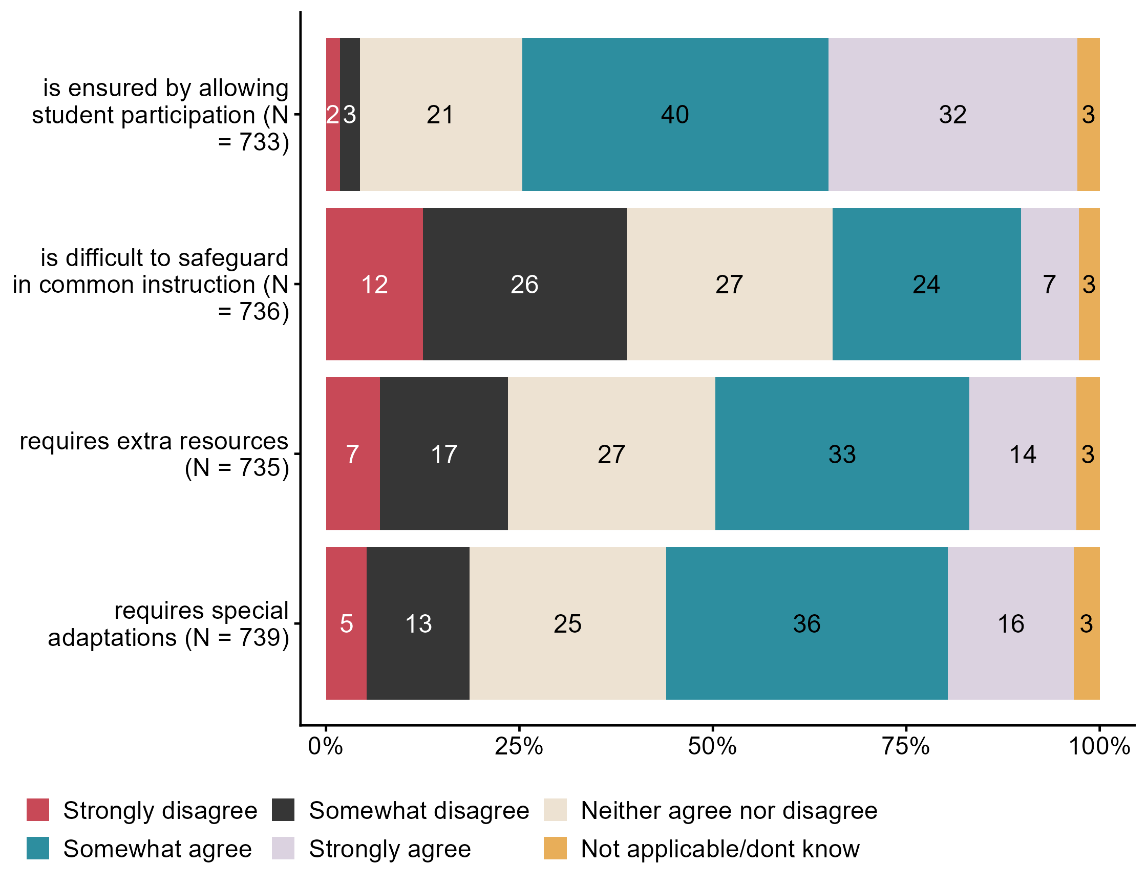 Figur 7.16.How much do you disagree/agree with the following statements. Ensuring that all students experience belonging when working with public health and life skills. N = [733–739], Figur (PNG), Figurdata (XLSX). (Q_LS32_1,Q_LS32_2,Q_LS32_3,Q_LS32_4)