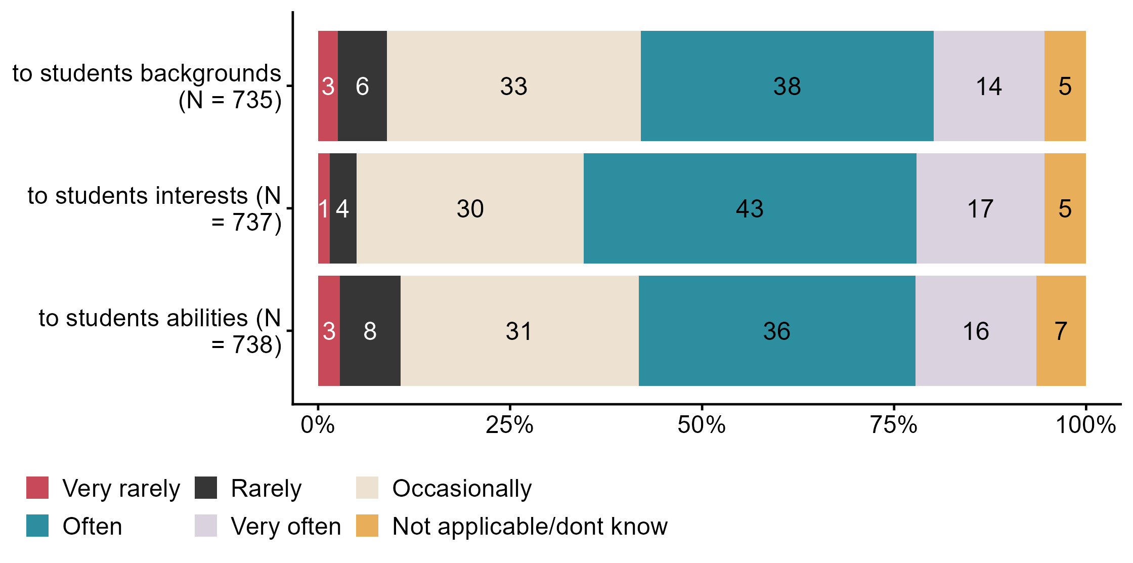 Figur 7.17.How often do you adapt work with public health and life skills. N = [735–738], Figur (PNG), Figurdata (XLSX). (Q_LS33_1,Q_LS33_2,Q_LS33_3)