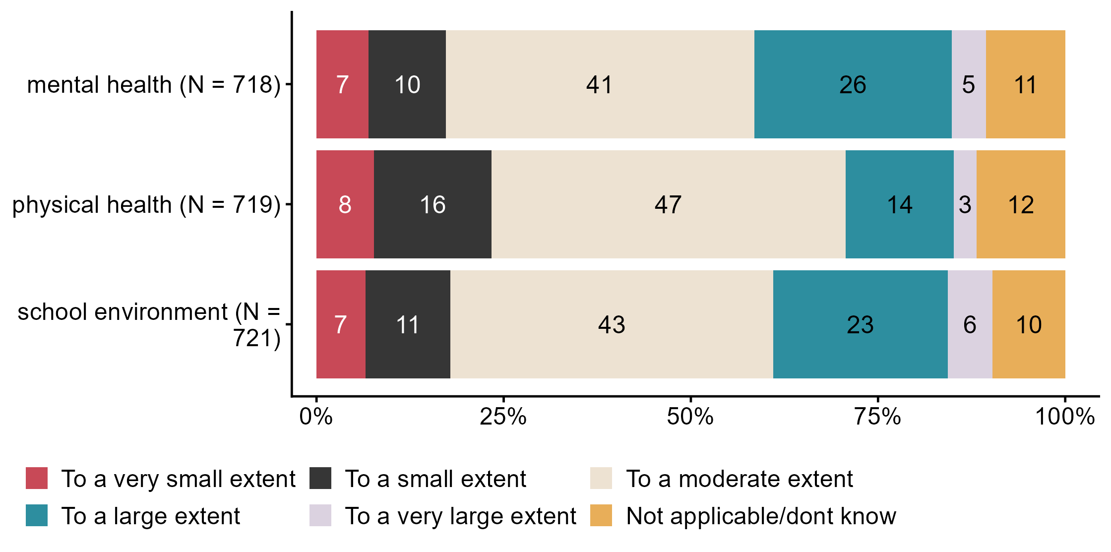 Figur 7.22.Overall, to what extent do you feel that the introduction of public health and life skills in LK20 has improved the school’s work with students’. N = [718–721], Figur (PNG), Figurdata (XLSX). (Q_LS39_1,Q_LS39_2,Q_LS39_3)