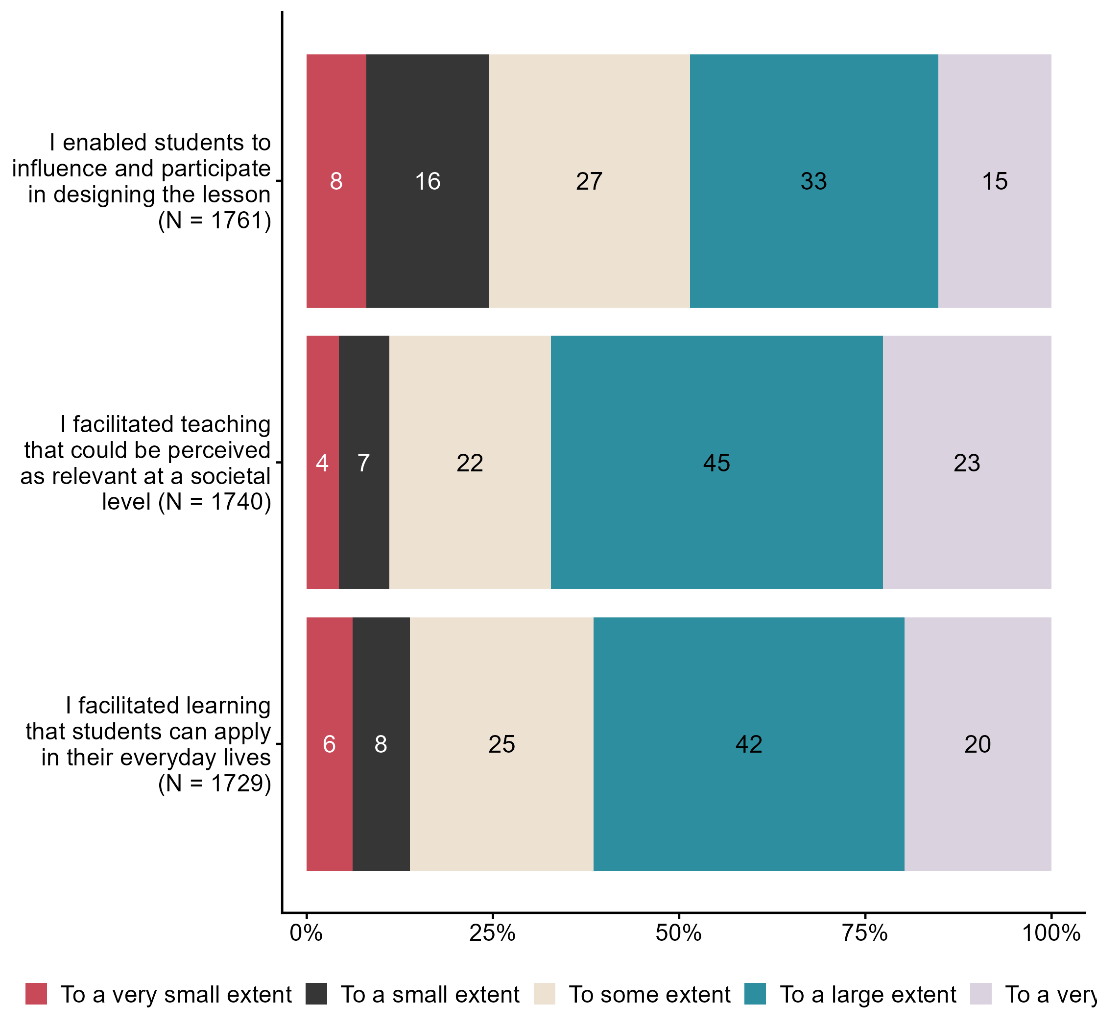 Figur 8.4.How did you facilitate public health and life skills in this lesson?. N = [1729–1761], Figur (PNG), Figurdata (XLSX). (Q_LG15_1,Q_LG15_2,Q_LG15_3)