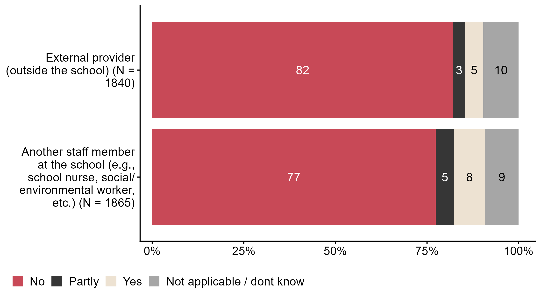 Figur 8.5.Did you involve other people when you included public health and life skills (FoL) in the lesson?. N = [1840–1865], Figur (PNG), Figurdata (XLSX). (Q_LG16_1,Q_LG16_2)