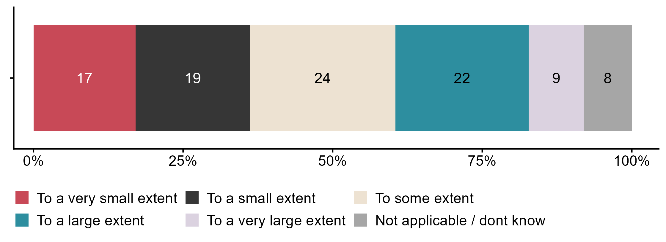 Figur 8.6.To what extent was public health and life skills included spontaneously in the lesson due to situations that arose just before or during the teaching?. N = 1887, Figur (PNG), Figurdata (XLSX). (Q_LG17)